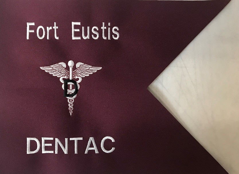 These small framable Army Dental Branch guidons measure 9"H x 12"L and feauture a fully embroidered design on nylon fabric. The edges are "Hot knifed" which allow for the guidon to be matted smoothly.